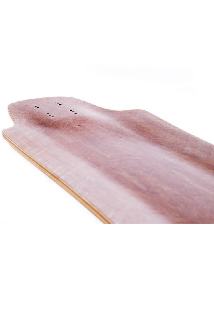 The Rocket V2 is, as it stands, the most recent iteration of the 2015-2015 Rocket V1 and Missile boards. It features a directional, gnarly concave with some of the greatest gaspedal-inspired concave you may ever see on a downhill longboard. Although the middle features almost no radial, the concave is high and persistently supportive wherever it matters. The small amount of rocker helps to support the feet on an otherwise laterally straight concave profile.