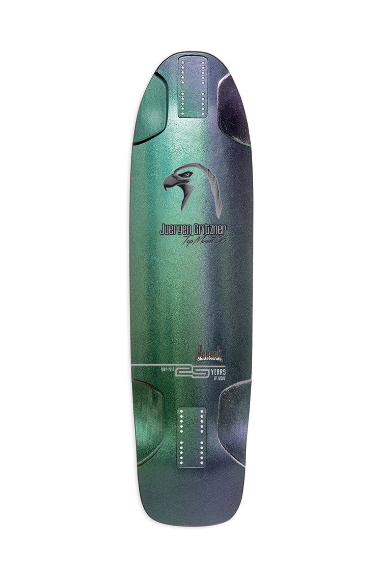 Other companies have tried woodburning, embossing, and staining boards to show off their natural wood grain- but nobody’s ever tried opalescence as a visual concept on their boards (at least, as far as we at LNV are concerned). That is, until now, with the Kebbek 25th Anniversary boards! And it looks absolutely bumping. Each board is painstakingly painted with layers of metallic and opalescent paints to create a visually stunning opalescent effect on each of their boards.