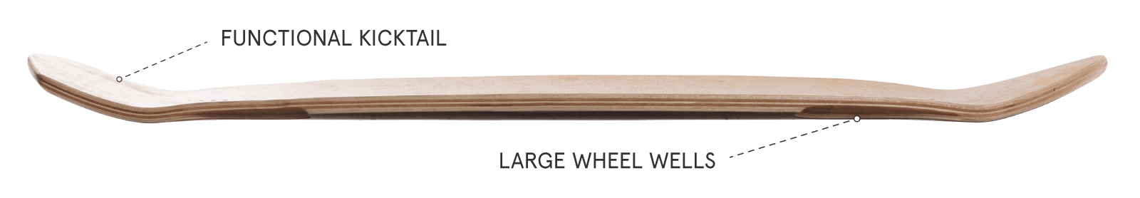The Rocket V2 is, as it stands, the most recent iteration of the 2015-2015 Rocket V1 and Missile boards. It features a directional, gnarly concave with some of the greatest gaspedal-inspired concave you may ever see on a downhill longboard. Although the middle features almost no radial, the concave is high and persistently supportive wherever it matters. The small amount of rocker helps to support the feet on an otherwise laterally straight concave profile.