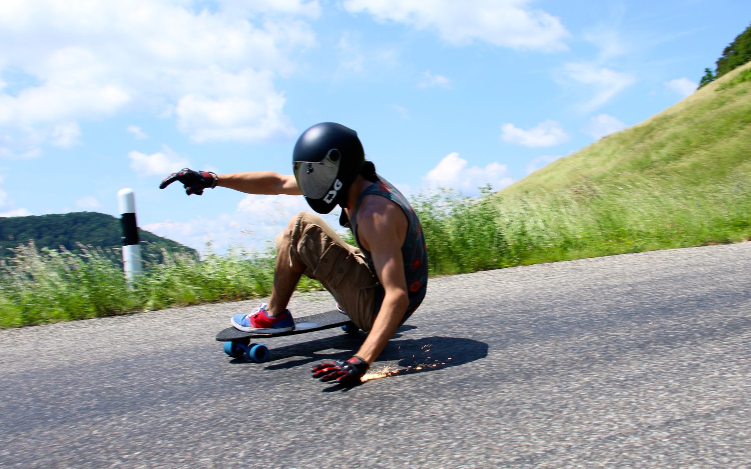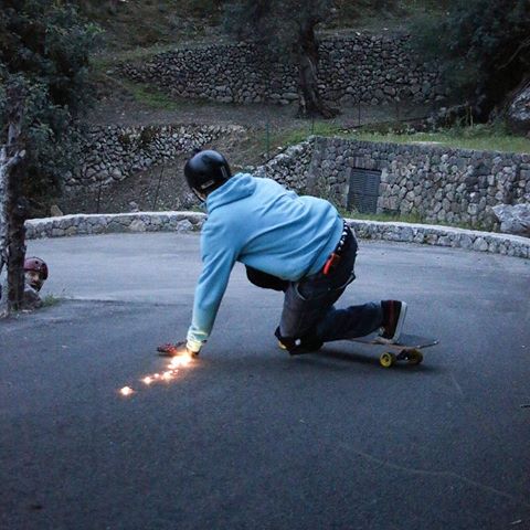 But they didn’t stop there. The Swiss have broken into the longboard market with BamBam, a new slide puck and glove company right out of Switzerland! Following closely after Crema Fire, BamBam reworked their design and production process for flint-impregnated slide pucks which spark and fire up during slides due to abrasion with asphalt. The result is bright, hot and dangerous (well, not really, the sparks are cool to the touch).