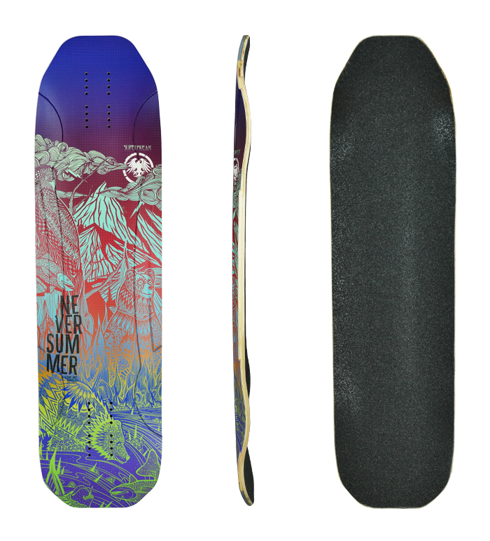Never Summer is an excellent snowboard company that entered the longboarding scene, utilizing their mastery of raw materials to start creating durable, efficient longboards for all different purposes. They have a roster of unique, useful shapes with all their respectively unique concaves. Through the years, Never Summer longboards have changed in shape and concave to adapt to the needs of the public, like a good company always should. This year, Never Summer gave us the new 2017 Superfreak to test out and write about, and we’ve got a lot of thoughts about it, and we wanted to share them with you!