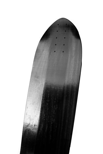 The Shadow 37 is 37 inches long with a hefty kicktail on the rear end. The board features slight rocker on the front end to give it a +4 degree wedge, and has Subsonic’s proprietary tri-plane radial, which is a smart mixture of large tub and radial concaves. There’s a small, half-inch microdrop at the front and the board is overall, 9.5 inches wide.