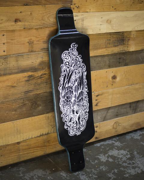 This year, they have many variants of two boards- the Shadow 37 and the Talon 37. All boards come with the signature black and white graphic, but are stained on their sidewalls and wheel wells.